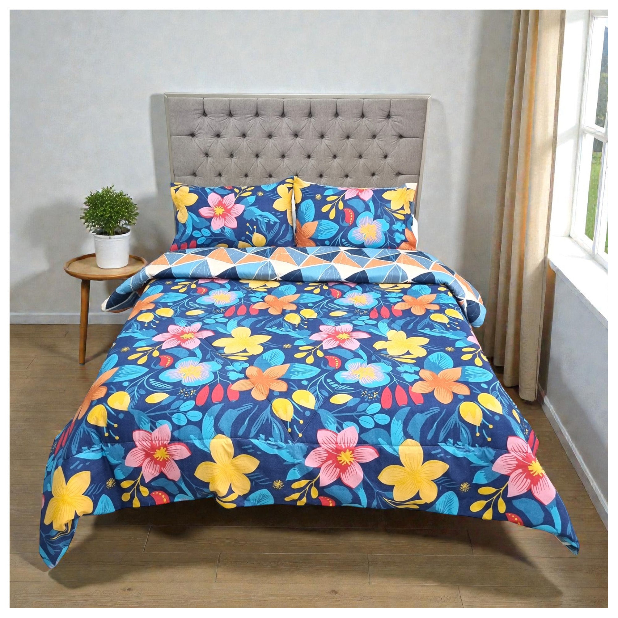 Edredón doble faz fabricado en tela microfibra de alta calidad, ligero al tacto, fresco y confortable, con hermosos diseños que le darán vida a tu alcoba, un estilo sofisticado, acogedor y cálido.