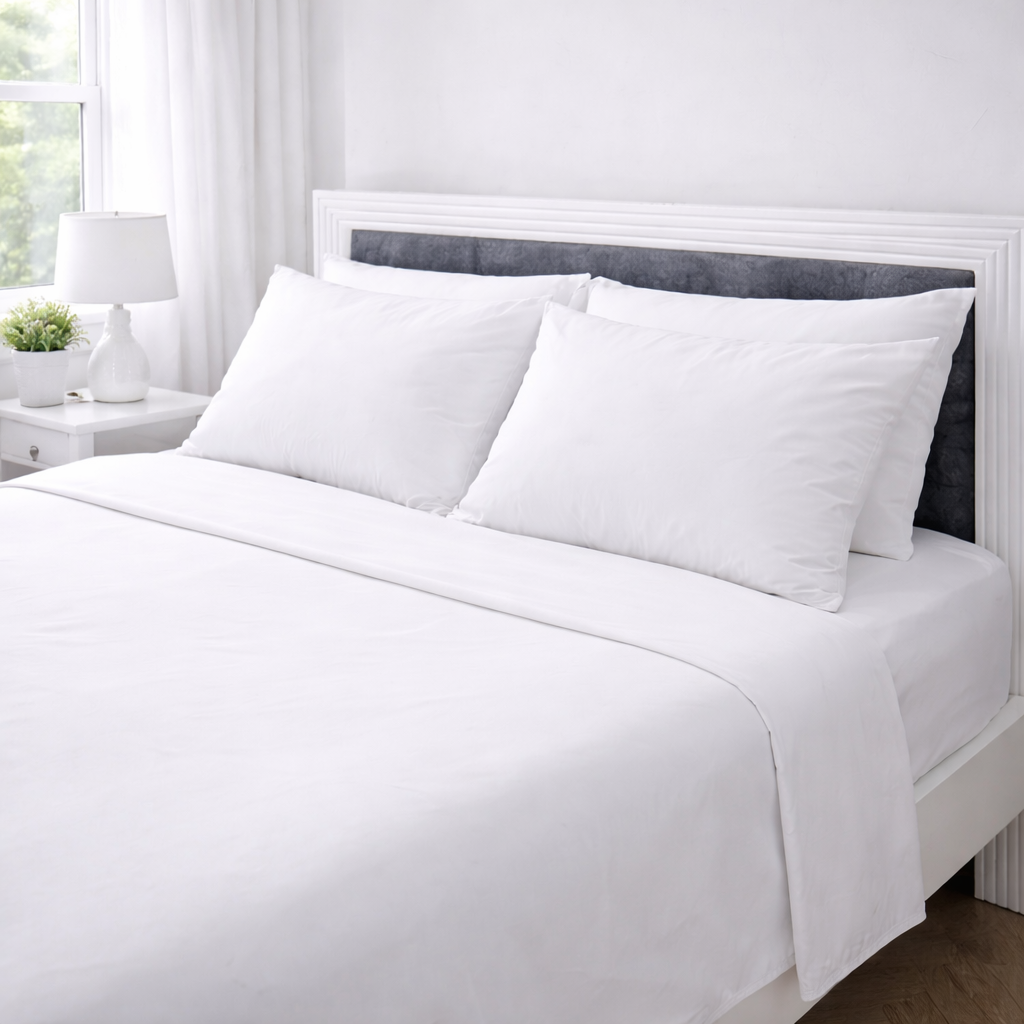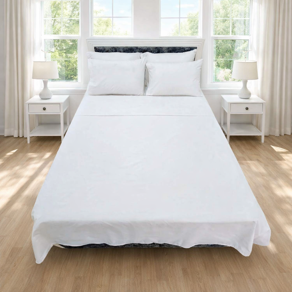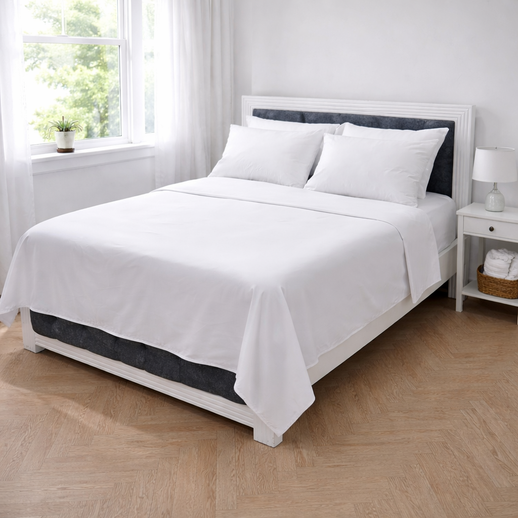 Disfruta de la combinación perfecta entre suavidad y durabilidad. Nuestras sábanas de 180 hilos han sido diseñadas pensando en quienes buscan un descanso fresco, sin complicaciones y con la elegancia atemporal del blanco puro.
