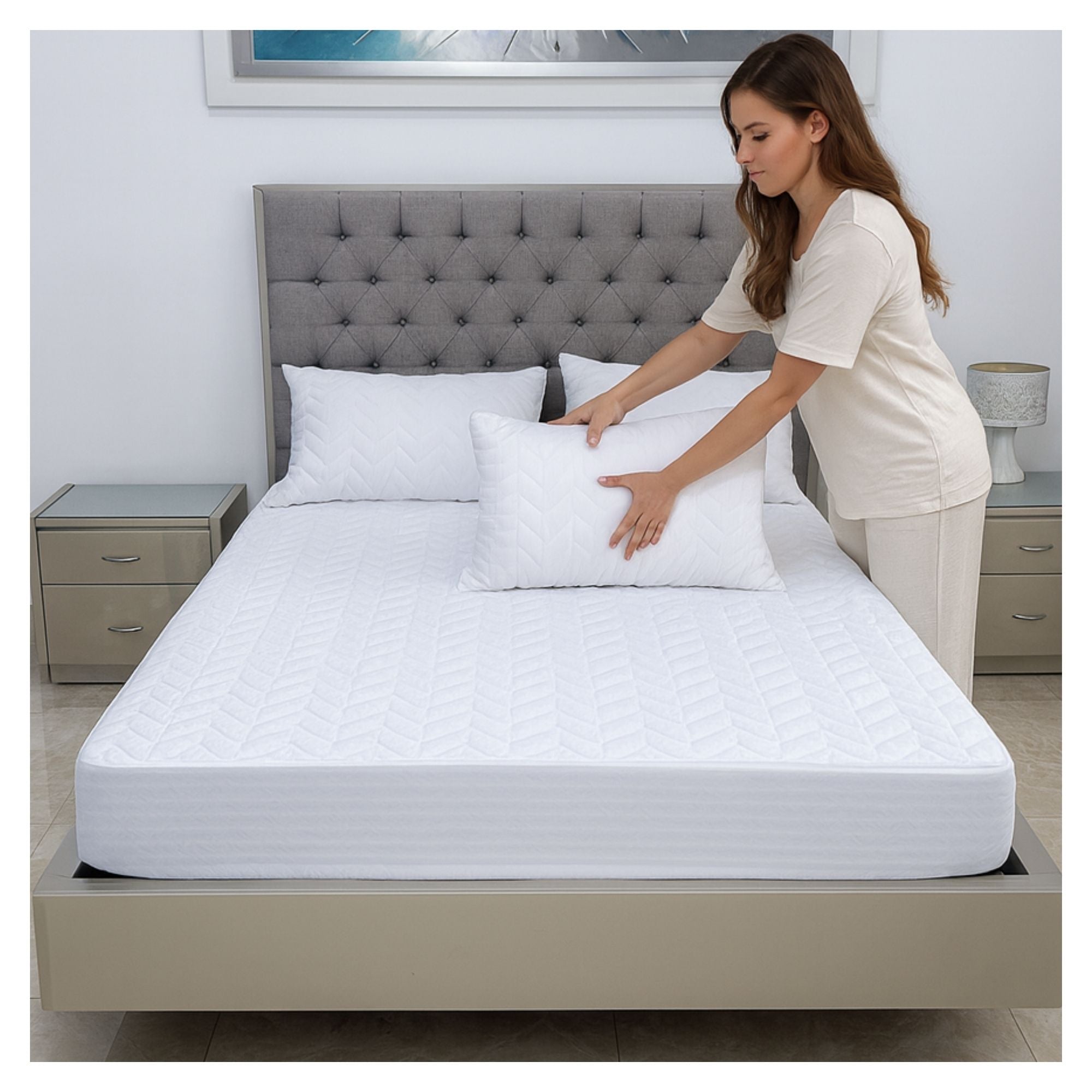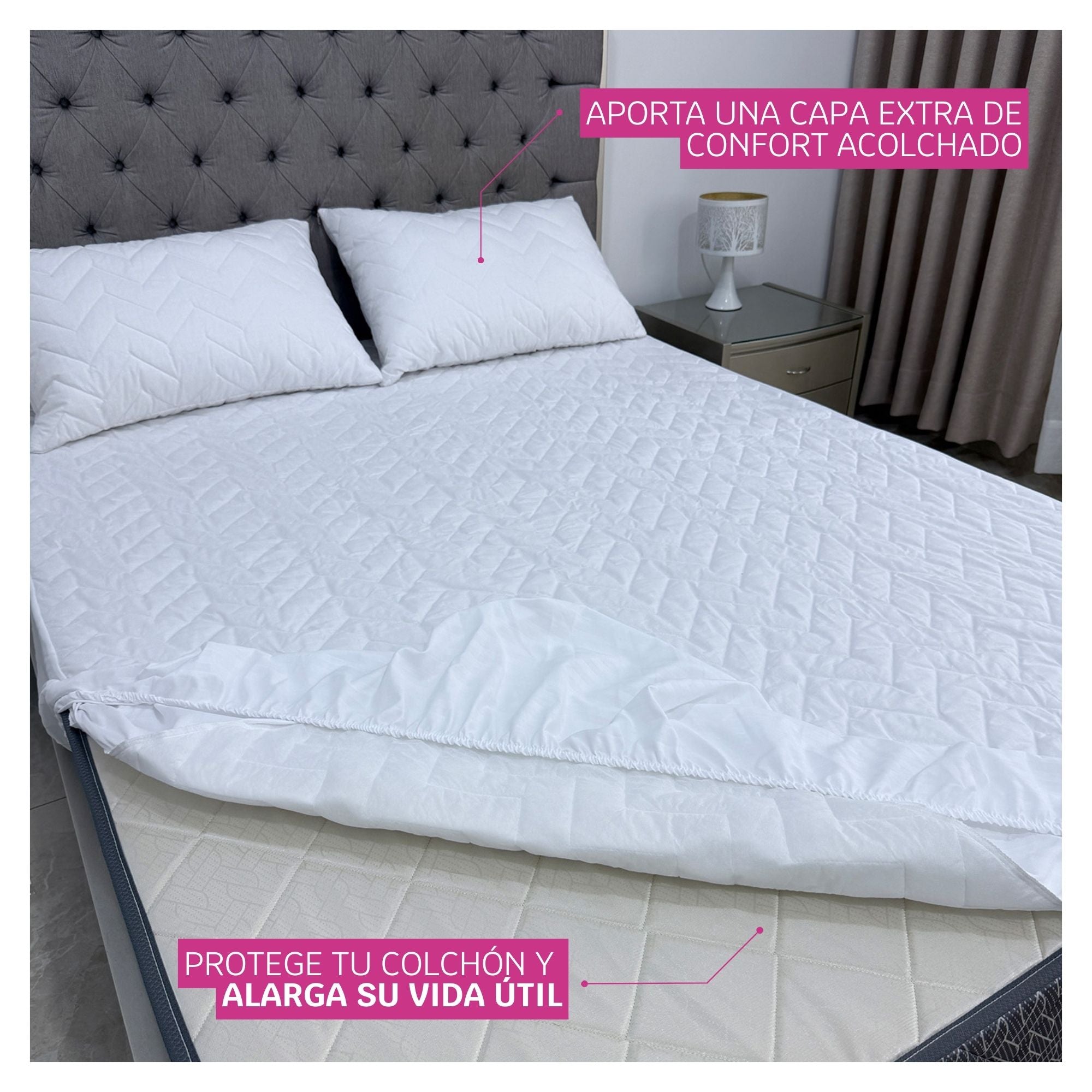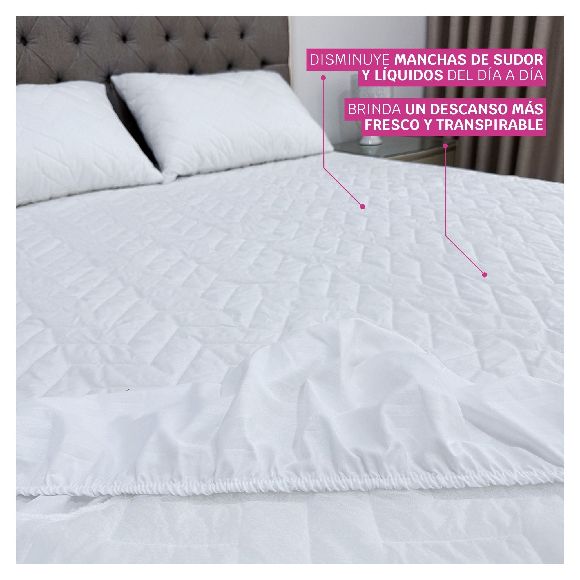 Protege tu inversión y disfruta de un descanso más saludable. Nuestro protector de colchón en tela acolchada de polialgodón está diseñado para extender la vida útil de tu colchón y almohadas, manteniéndolos limpios y frescos por más tiempo.
